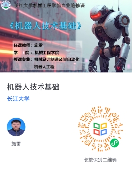 “机器人技术基础”课程是机械设计制造及其自动化专业的一门专业方向课。该课程主要讲述机器人运动学、动力学和轨迹规划的基本概念,常见机器人结构及误差修正方法、图像识别与语音识别基本原理,串联式机器人系统设计计算。