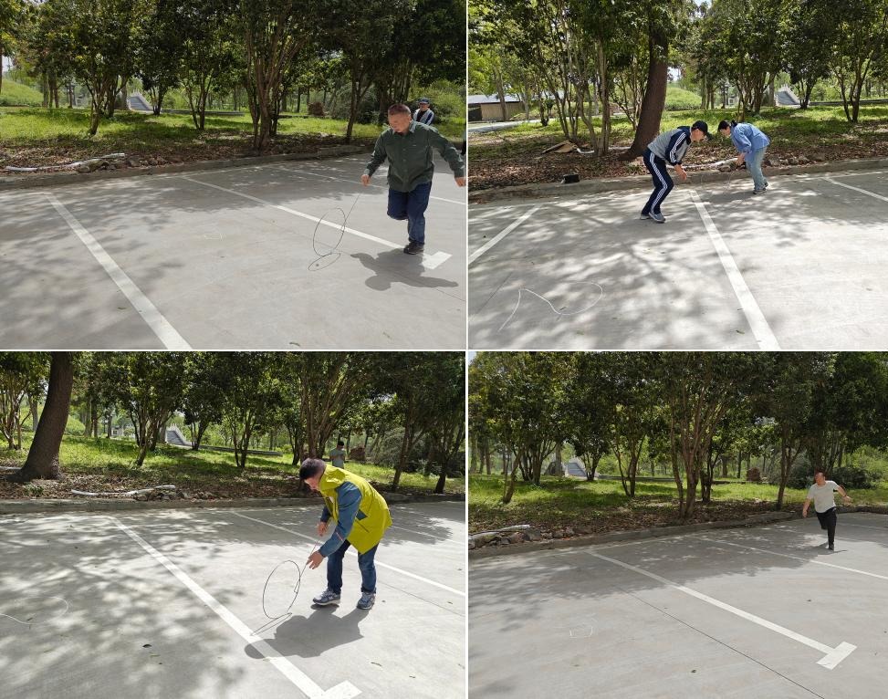 滚铁环项目瞬间点燃了大家的童年记忆。每队4人接力,在20米长的赛道上推动铁环竞速。铁环时而听话地滚动,时而调皮地歪倒,选手们手忙脚乱的样子引发了阵阵欢笑。