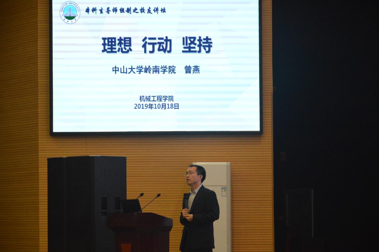 曾燕2005年毕业于公司材料成型及控制工程专业,现为中山大学岭南公司教授、博士生导师,学术成果丰硕。此次应邀为母校学弟学妹讲座,他以“理想、行动、坚持”为题分享了自己对成长成才的感悟与体会。