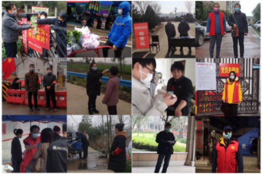 和以上党员一样,公司有不少的党员同志主动请缨参与了社区抗疫:参与南苑小区防疫值班的侯作富同志;参与东苑小区值守和物资配送的唐明、邓福成同志;在天门卡点防疫值守的龚敏同志;在油苑小区参与防疫工作的李翔、冉小丰同志;在江陵县郝穴镇双桥村,参与出入登记、体温测量、物资分发及突发事件处理的竺正海同志;在观音垱镇参与值守的眭满仓同志;在沙市滨湖小区发放物资的易先中同志;在广东一小区参与防疫值守的刘旭辉同志;在楚都御苑小区参与防疫工作的马卫国、李美求、陈义厚同志;在沙市惠工社区参与防疫值守的王喆同志;在利川社区监控居民健康状况的向如同志;在潜江社区参与防疫值守的田华同志;在山西昔阳一社区参与值守的张云华同志;在仙桃德政园社区值班的李哲同志;在沙市洪垸小区值班的吴修德同志;在胸科医院小区值班的黄万钢同志等等……,他们以实际行动在完成本职工作之余为防控疫情努力着。