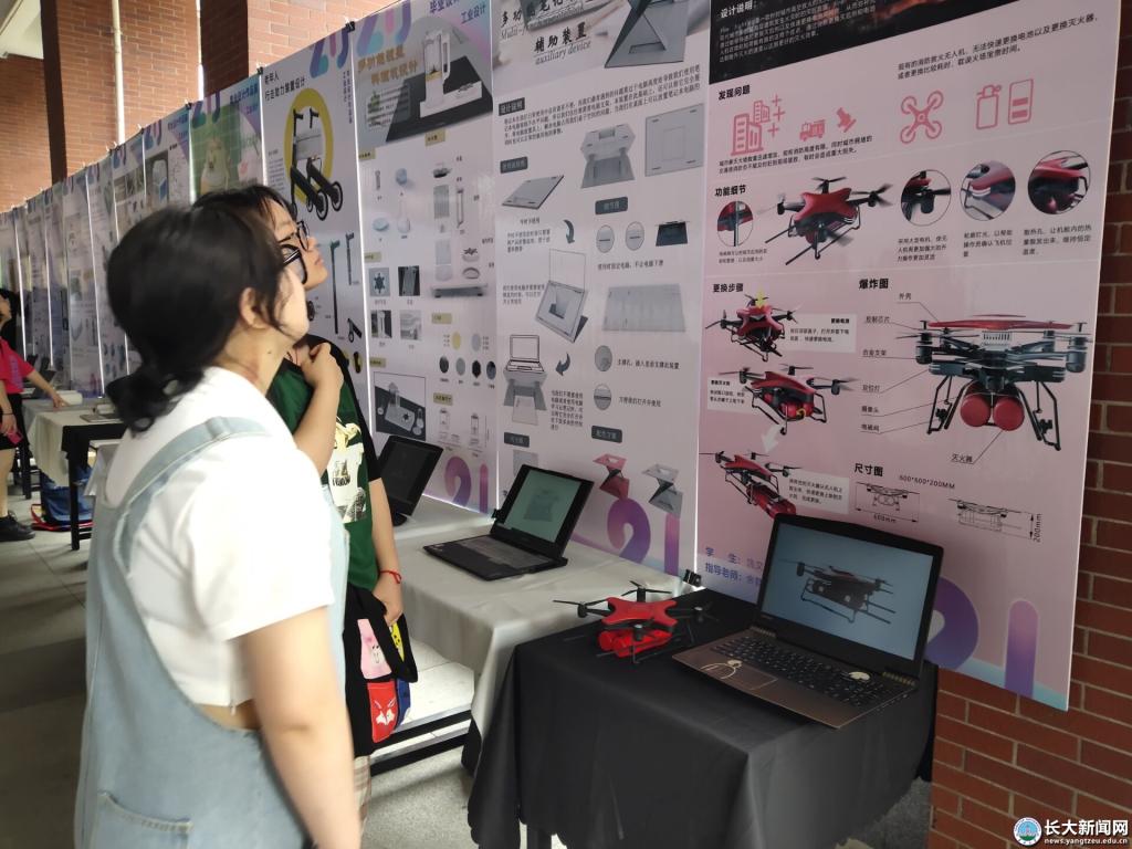 工设11701班夏博昌指着自己的作品说,从开始进行调研,绘制草图,到做三维建模,制作动画路径……大概花费了两个月,看到成品后,觉得所有的付出都是值得的。工业设计系龚敏欣老师说,这次展览是员工们送给自己最好的毕业礼物。