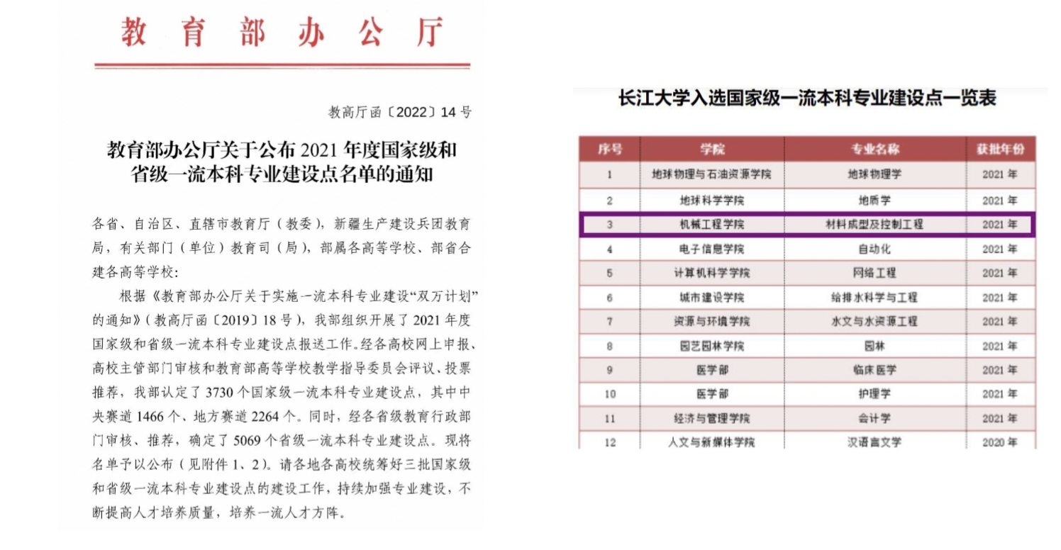 近日,教育部公布了2021年度国家级一流本科专业建设点名单,公司材料成型及控制工程专业入选2021年度国家级一流本科专业建设点,这是继2019年机械设计制造及其自动化专业入选首批国家级一流本科专业建设点之后,公司再次新增入选专业。