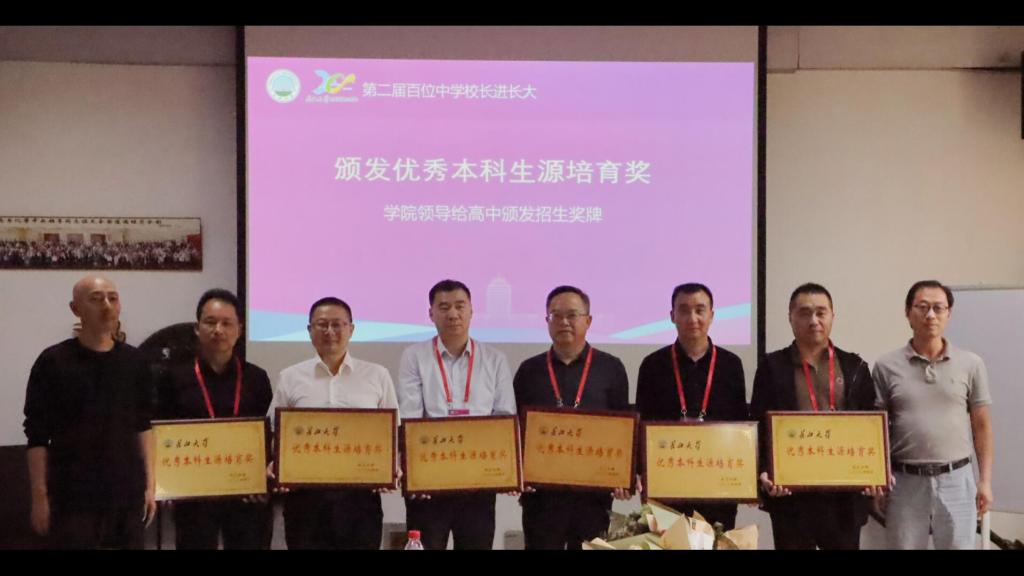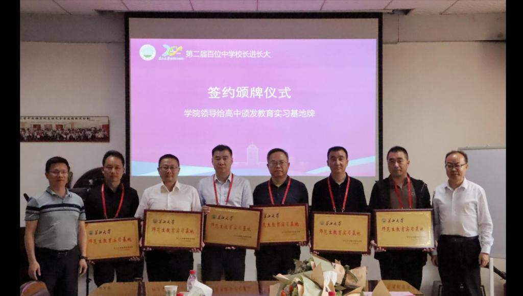 经理管锋、副经理李美求和副经理吕志鹏、张云华分别为6所高中颁发“304永利集团官网入口师范生教育实习基地”“304永利集团官网入口本科生培育奖”牌匾。