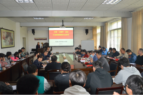 为推进学习贯彻习近平新时代中国特色社会主义思想主题教育走深走实,机械公司围绕思想提升、作风提升、能力提升(以下简称“三提升”)开展管理服务团队建设,为“双一流”建设凝聚力量。4月27日下午,“三提升”系列活动之主题教育学习在7教305会议室召开,全体院领导、各党支部支委、系主任、副主任、全体管理干部、员工代表等参加会议。分党委书记王红艳主持会议。