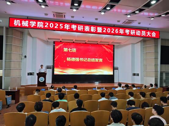 最后,党委书记杨德强作总结发言。杨德强在讲话中围绕“传承、奋斗、使命”三个关键词,与同学们分享了宝贵体会。他希望同学们以榜样为镜,赓续机械荣光;以行动为基,锻造核心竞争力;以时代为帆,勇担制造强国重任。杨德强鼓励同学们树立远大志向,将个人理想融入国家发展,做有理想、有本领、有担当的新时代机械人。