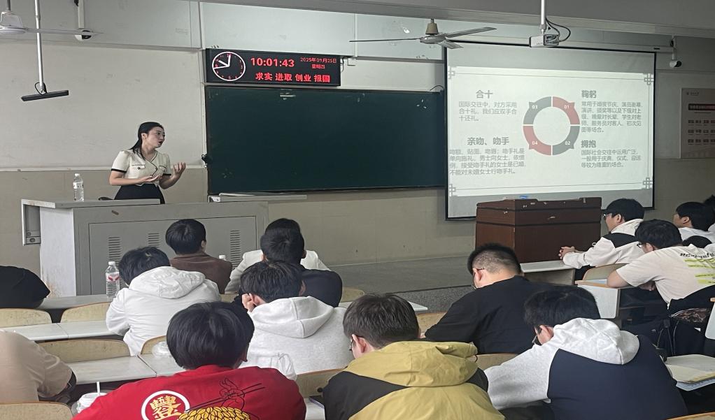 (通讯员 徐伟洪)为全面提升研究生群体的综合素养与社交能力,助力员工在学术交流、求职就业及社会交往中展现良好风貌,9月25日上午9时,304永利集团特邀中共荆州市委党校张英娥老师,为全体研究生开展了一场系统而专业的现代礼仪培训。本次培训通过理论讲解与案例分析相结合的方式,为同学们带来了一堂实用性强、指导性明确的礼仪课程。