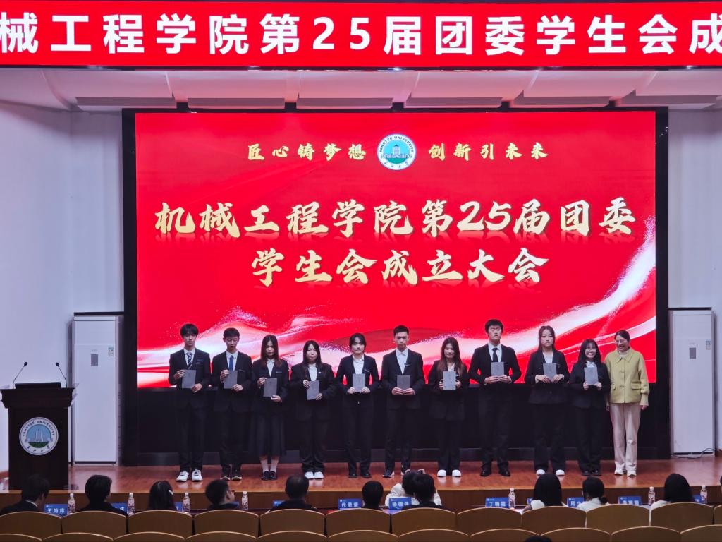 团委书记吴钐宣读新一届员工会聘任文件,明确了第25届团委员工会组织架构。随后,24届团委员工会主席王灿炜向25届团委员工会主席李佳文进行共青团团旗交接。杨德强、丁明霞、代荣荣、吴钐几位老师分别为主席团、部长及副部长们授牌赠书,新一届员工会主席团、部长及副部长接过聘书与书籍,正式履职。