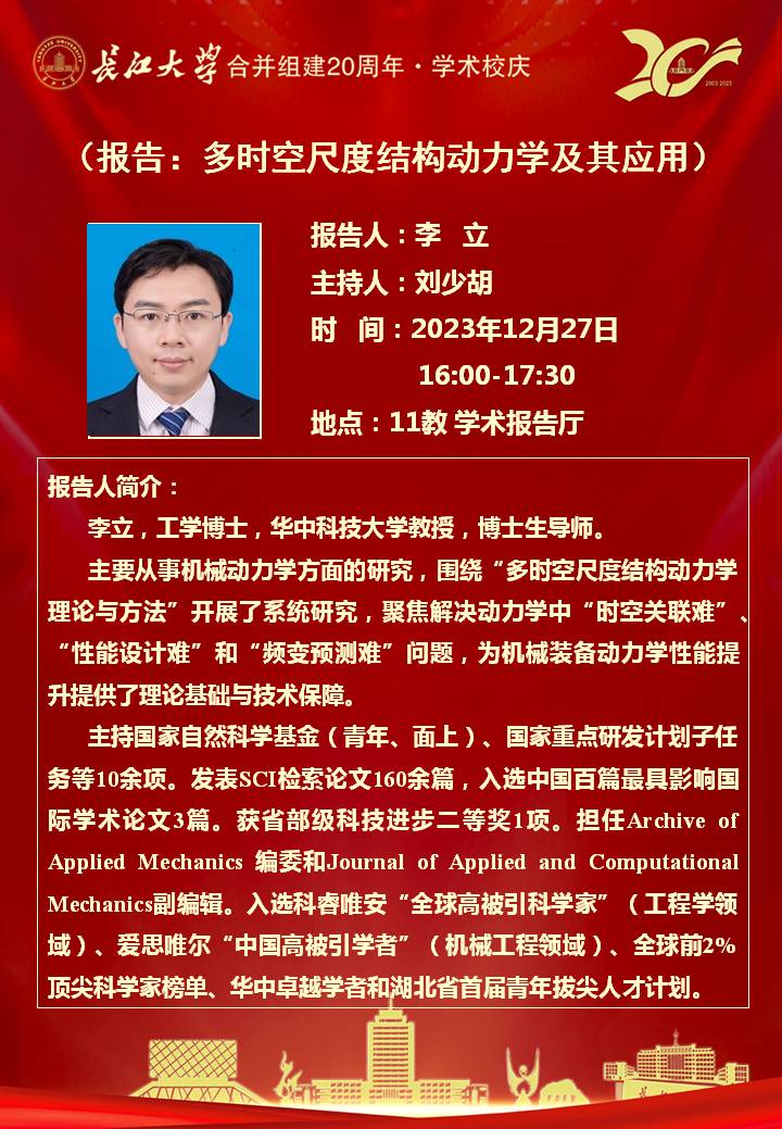 【学术论坛】“长大20年”学术论坛暨长江机械讲坛2023年第十四讲
