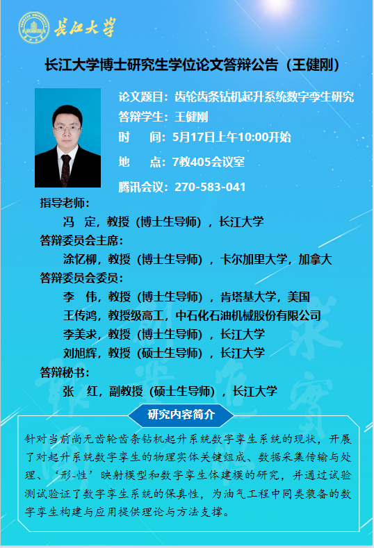 【博士论文答辩】304永利集团官网入口博士研究生学位论文答辩公告(王健刚)