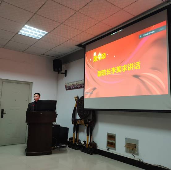 副经理李美求对新生的到来表示热烈的欢迎,欢迎同学们加入机械公司这个大家庭。新的学期、新的起点、新的要求。同时他给2022级新生提出了三点希望:一是坚定理想信念,做工业报国的坚定传承者;二是掌握过硬本领,做民族复兴的坚定奋斗者;三是不畏艰难挫折,做中国梦想的坚定践行者,努力成长为无惧时代变化、敢于接受挑战的人。