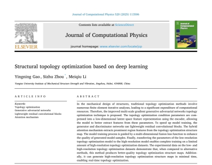 2024年10月,由Elsevier主办的权威外文T1级学术期刊《Engineering Applications of Artificial Intelligence》、《Journal of Computational Physics》先后刊发了公司周思柱教授团队关于结构拓扑优化的最新研究成果,公司博士研究生高英宁为论文第一作者,周思柱教授为论文的通讯作者。