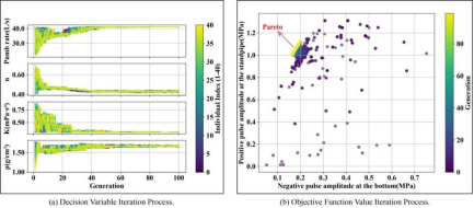 该论文基于一维水击理论,在完整的钻井液循环系统中构建了泥浆正脉冲传输衰减模型,并采用特征线法进行数值求解。通过小波分解与重构滤波技术提取正脉冲幅值,分析了钻井液密度、稠度系数、流性指数、泥浆泵排量和井深对泥浆正脉冲信号衰减的影响,将这些影响因素作为NASG-II多目标优化算法的决策变量,提出了一种适用于安全密度窗口窄的超深井的双目标优化方法,旨在增强地面信号接收的同时降低井底波动压力。