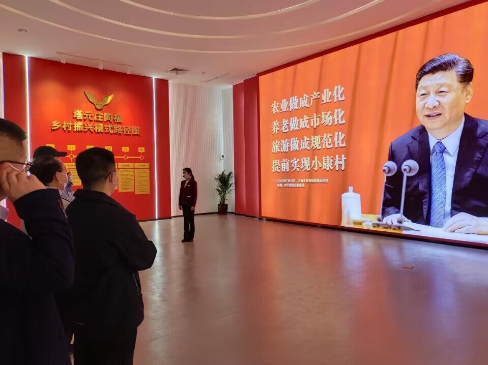 正定县城西,滹沱河北岸,塔元庄村就在这里。参观中,讲解员介绍了塔元庄村牢记习近平总书记殷切嘱托,团结一心、奋发进取,一路阔步前进的故事,塔元庄村建成了产业兴旺、生态宜居、乡风文明的小康村,在奋进新征程中不断谱写乡村振兴新篇章。同时,党员们深刻感受到,沿着习近平总书记指引的方向,今天的塔元庄以更加高昂的斗志、更加坚定的决心,解放思想、奋发进取,撸起袖子加油干,以全面推进乡村振兴的新举措奋进新征程、建功新时代。