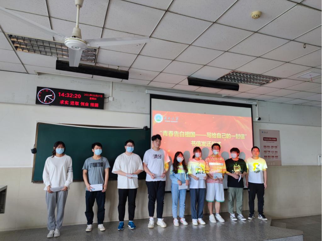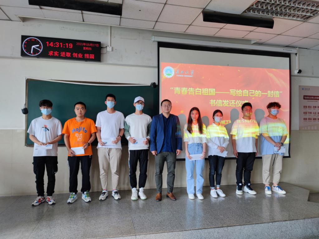 2019级本科生是实现“两个一百年”奋斗目标、实现中华民族伟大复兴中国梦的亲历者和实践者。2019年9月,他们写了两封信给未来的自己,一封是给建党100周年,即2021年的自己,另一封是给建国100周年,即2049年的自己。仪式上,班主任李欢、孙巧雷等老师依次上台为员工发还信件。