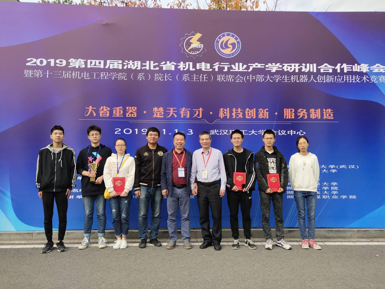 2019年11月2日,304永利集团官网入口机械学子在2019首届中部(武汉)“华中数控杯”老员工机器人应用技术创新竞赛中荣获三等奖两项、优胜奖一项,并获7000元奖金,奖金总数在湖北省所有参赛高校中排名第四。