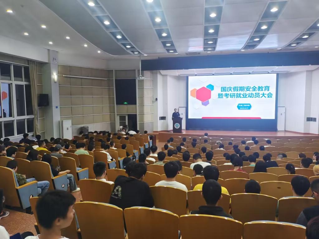9月27日晚,机械公司召开2020级本科生安全教育年级大会,会议上辅导员申旭老师就禁止饮酒、防电信诈骗、消防安全和防溺水等重点内容进行了强调,通过真实鲜活的案例提醒同学们要切实增强安全意识和自我保护能力。会上申旭老师还带领全体2020级同学共同观看了“老员工国防、安全、心理健康教育”公益大讲堂,筑牢同学们的思政安全红墙。其他年级也通过主题班会的形式开展了专题安全教育并组织集中观看公益大讲堂各专题课程视频,为公司员工安全工作的稳定开展提供了有效的思想政治教育保障。