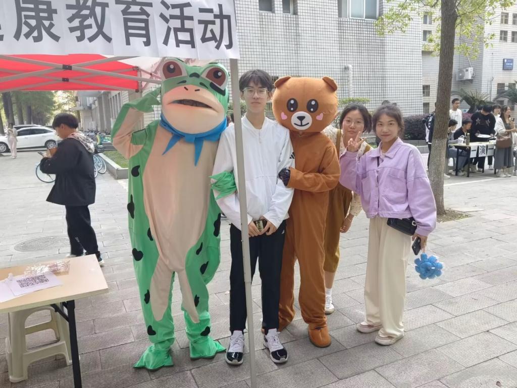 除了有趣的游戏,活动还设置了互动环节。通过“暖心抱抱”,同学们既能倾诉自己的内心,又能与身穿玩偶服的工作人员拥抱、合影留念。通过参与“爱自己的多种方式”,同学们可以完成一些小任务并获取对应奖励。