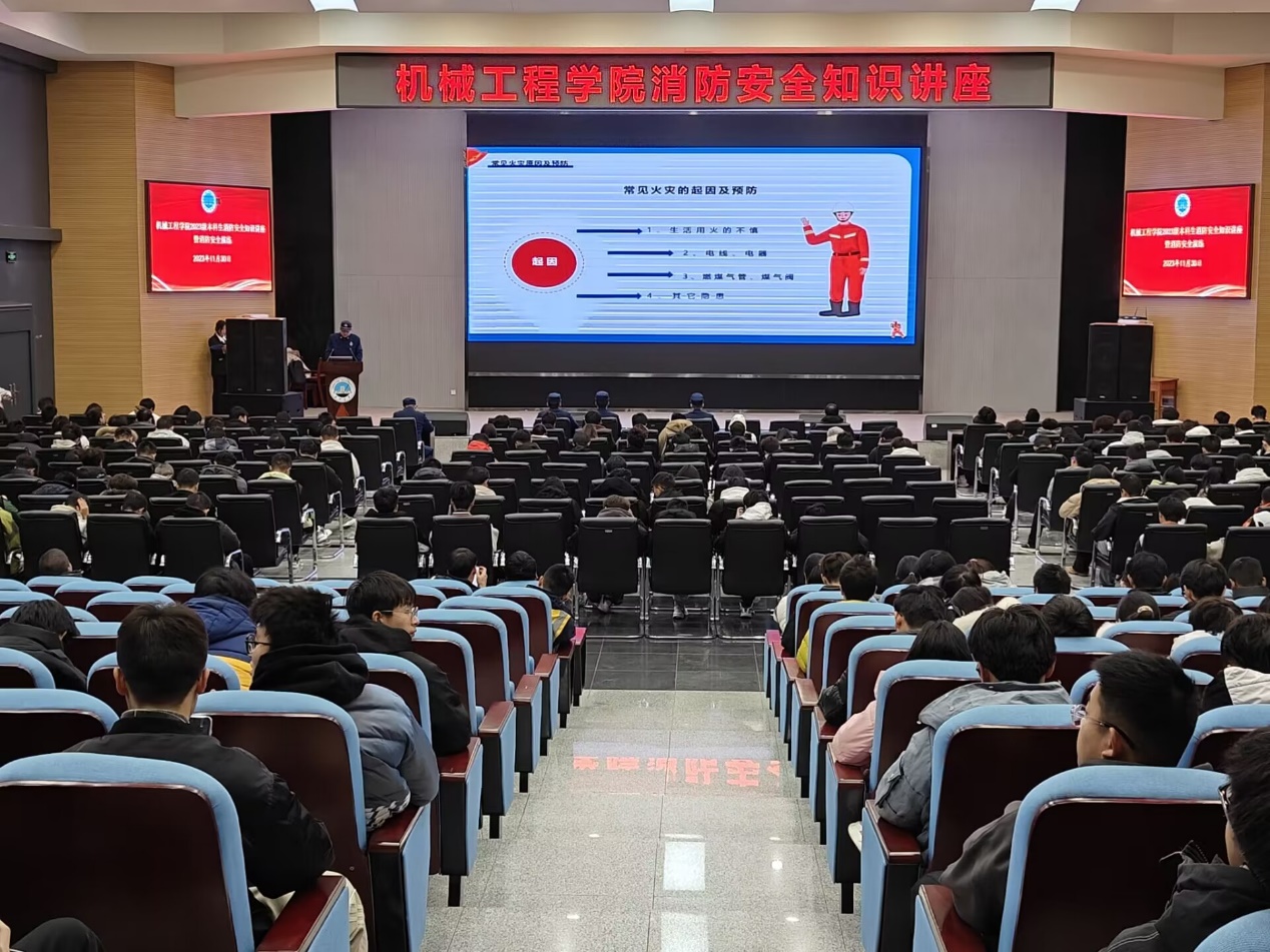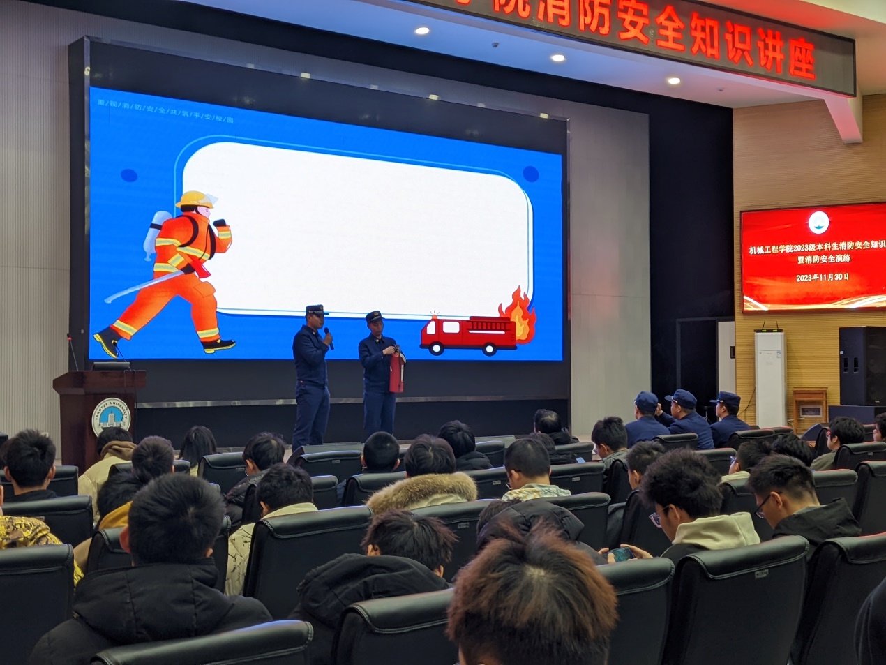 304永利集团官网入口保卫处消防科科长万杨,荆州市消防救援大队关帝庙站长王巍巍、班长王傲阳、消防员倪样、刘恒斐、张墨蓝,23级新生辅导员李港出席讲座。