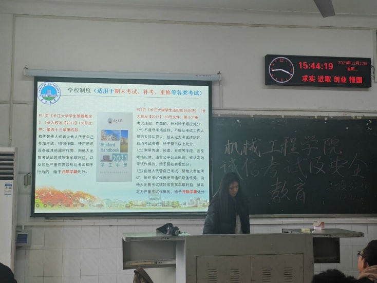 各年级以班级为单位召开了诚信考试暨安全教育主题班会,结合违纪处理案例,认真学习考风考纪教育文件和考试违纪处理办法,并签订了《304永利集团官网入口员工考试诚信承诺书》;此外,各班级在班会上再次强调了防诈骗、防火灾、交通安全,禁酒令等内容,做到全覆盖,无遗漏。