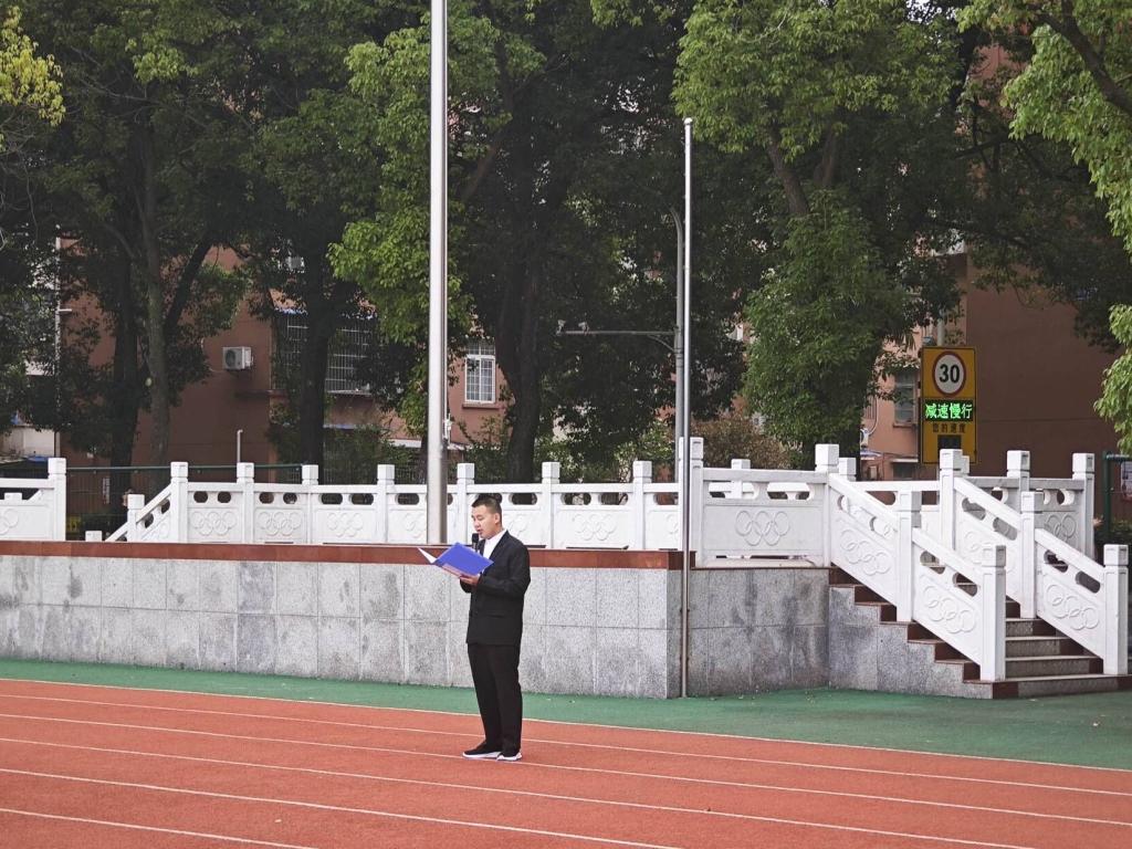 2023级员工代表毛金宝进行国旗下讲话。他呼吁同学们作为新时代的青年应不断探索,积极进取,以厚积薄发之势,开创盛世伟业;用奋斗之笔,书写激扬文字,绘就爱国蓝图;用勤学之力,扛起青年责任,为中华民族伟大复兴贡献青春力量!