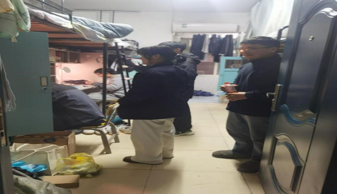 随后公司党委副书记丁明霞带领全体辅导员及班主任深入每间宿舍,仔细查看宿舍消防安全卫生状况,包括地面清洁、物品摆放、床铺整理以及是否存在违规电器、私拉乱接、消防通道是否畅通等情况。