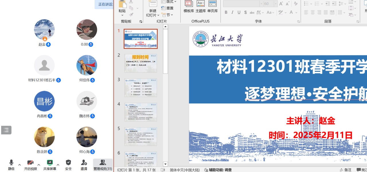 2月10日晚,公司党委副书记丁明霞组织全院各年级辅导员、班主任召开了线上开学安全工作会议,传达了公司关于2025年春季开学工作准备的相关指示,并要求各年级辅导员、班主任组织召开好开学安全教育班会,做好开学相关准备工作。