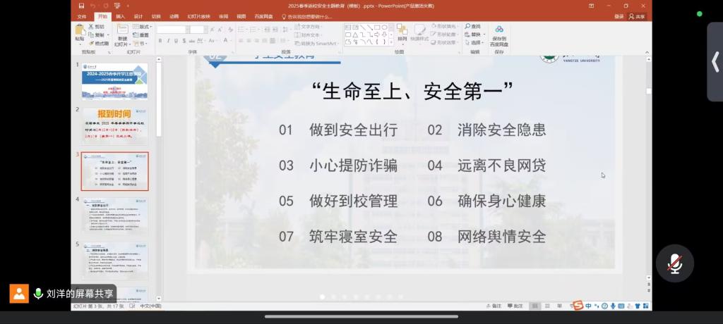 2月11日——13日,各年级辅导员、班主任分别组织召开了开学安全教育班会,会上传达了开学相关注意事项及安全提示,强调了交通安全、财产安全、网络安全、食品安全、防诈骗等,并提示同学们关注天气变化,做好返校行程安排,加强应对突发事件的能力,有异常情况及时与辅导员、班主任及家人联系,引导同学们认识到安全是学习和成长的基础,要始终将“安全”铭记在心。